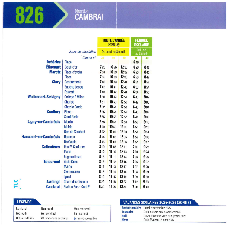 Horaires de Bus 24 September 2025 by Quentin 807 VILLERS-OUTREAUX CAMBRAI 847 VILLERS-OUTREAUX CAUDRY 826 ELINCOURT CAMBRAI Ligne1 Image 2 of 7