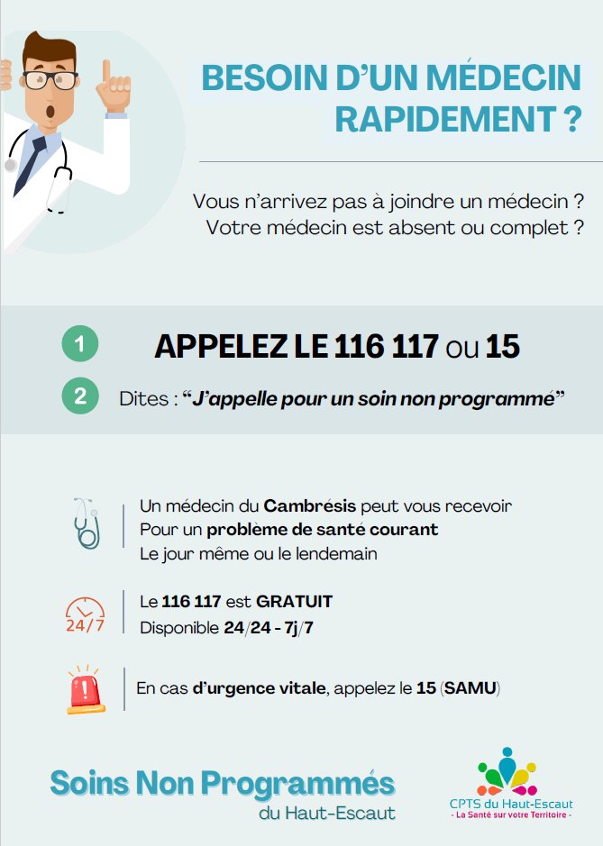 Besoin d’un médecin rapidement ? 22 December 2025 by Quentin Vous n’arrivez pas à joindre un médecin ? Votre médecin est absent ou complet ? APPELEZ LE 116, 117 ou 15