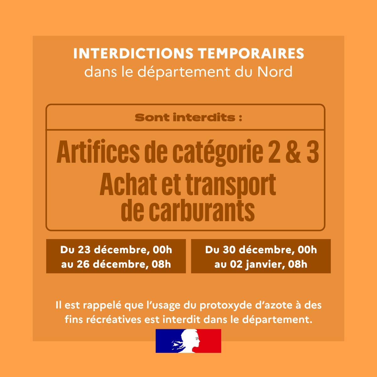 À l’occasion des fêtes de fin d’année, Bertrand Gaume, préfet du Nord a pris des mesures de police administrative afin de prévenir les troubles à l’ordre public dans le département du Nord :
