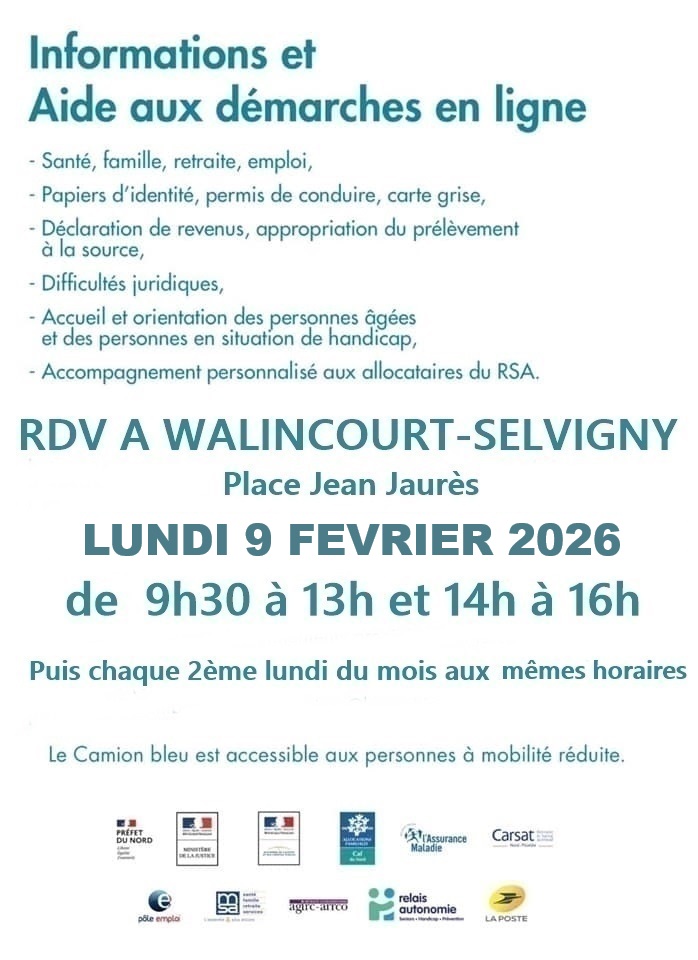 Le Camion bleu du Cambrésis le 9 février 2026 10 January 2026 by Quentin SUR RENDEZ-VOUS AU 03.59.73.18.30