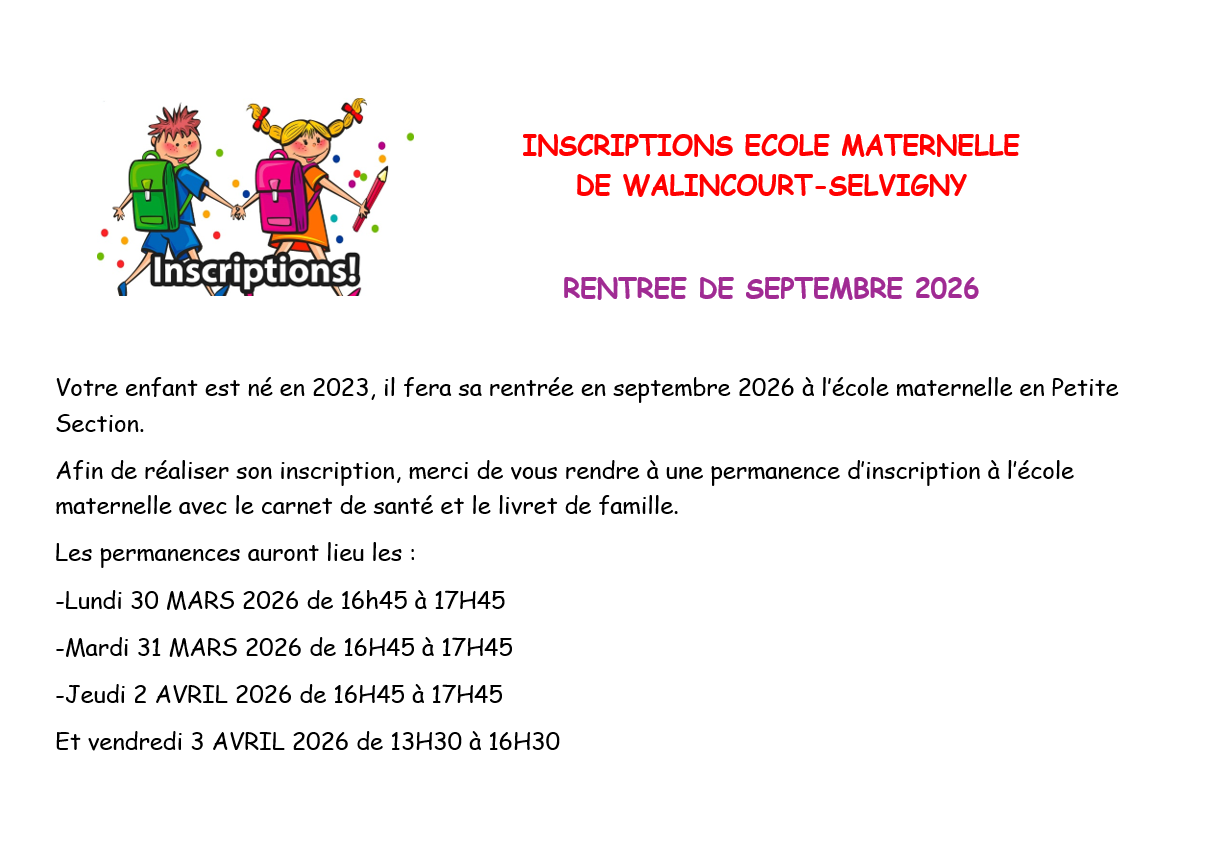 INSCRIPTIONS ECOLE MATERNELLE