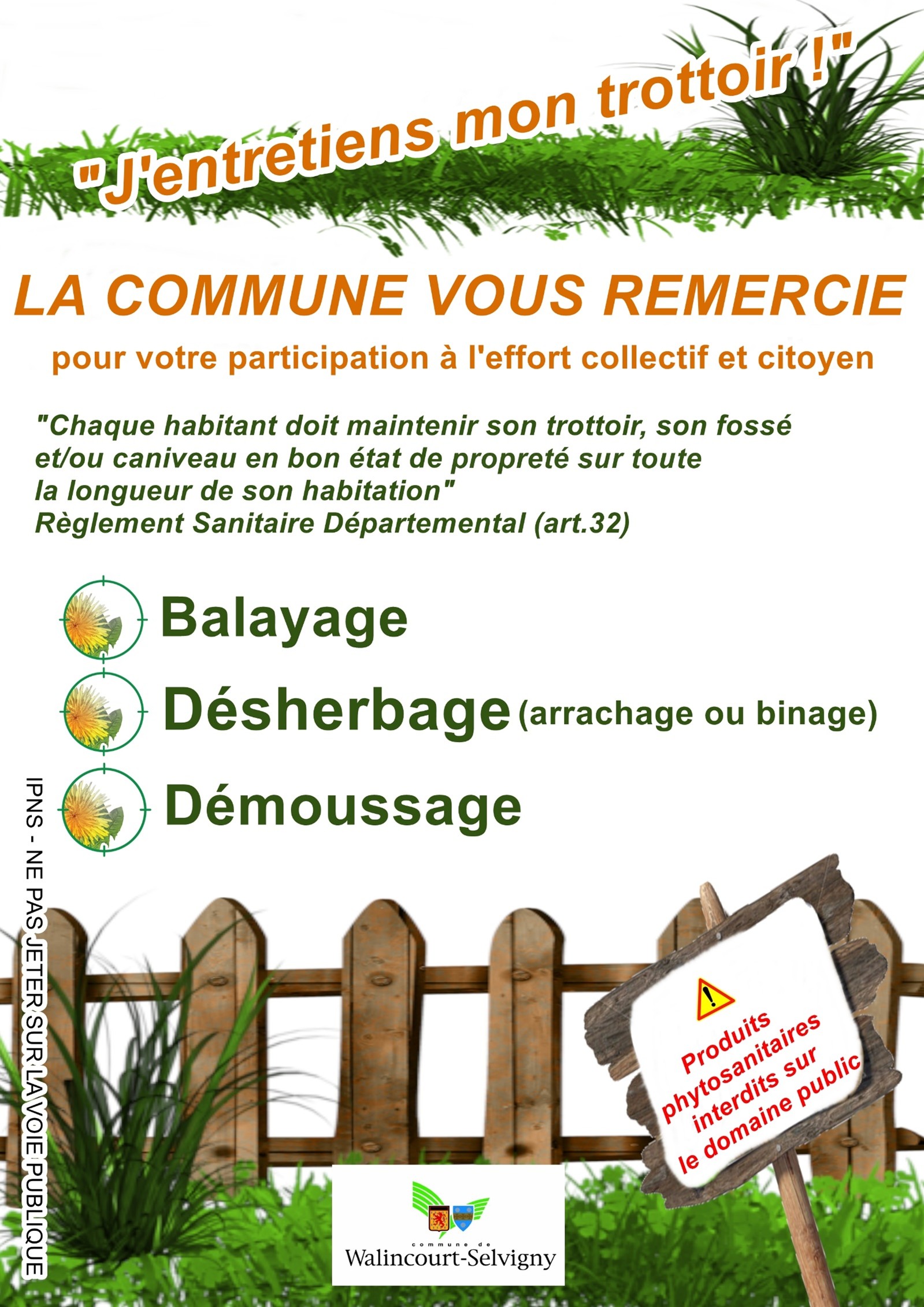 • le désherbage du trottoir au droit de son habitation ou commerce